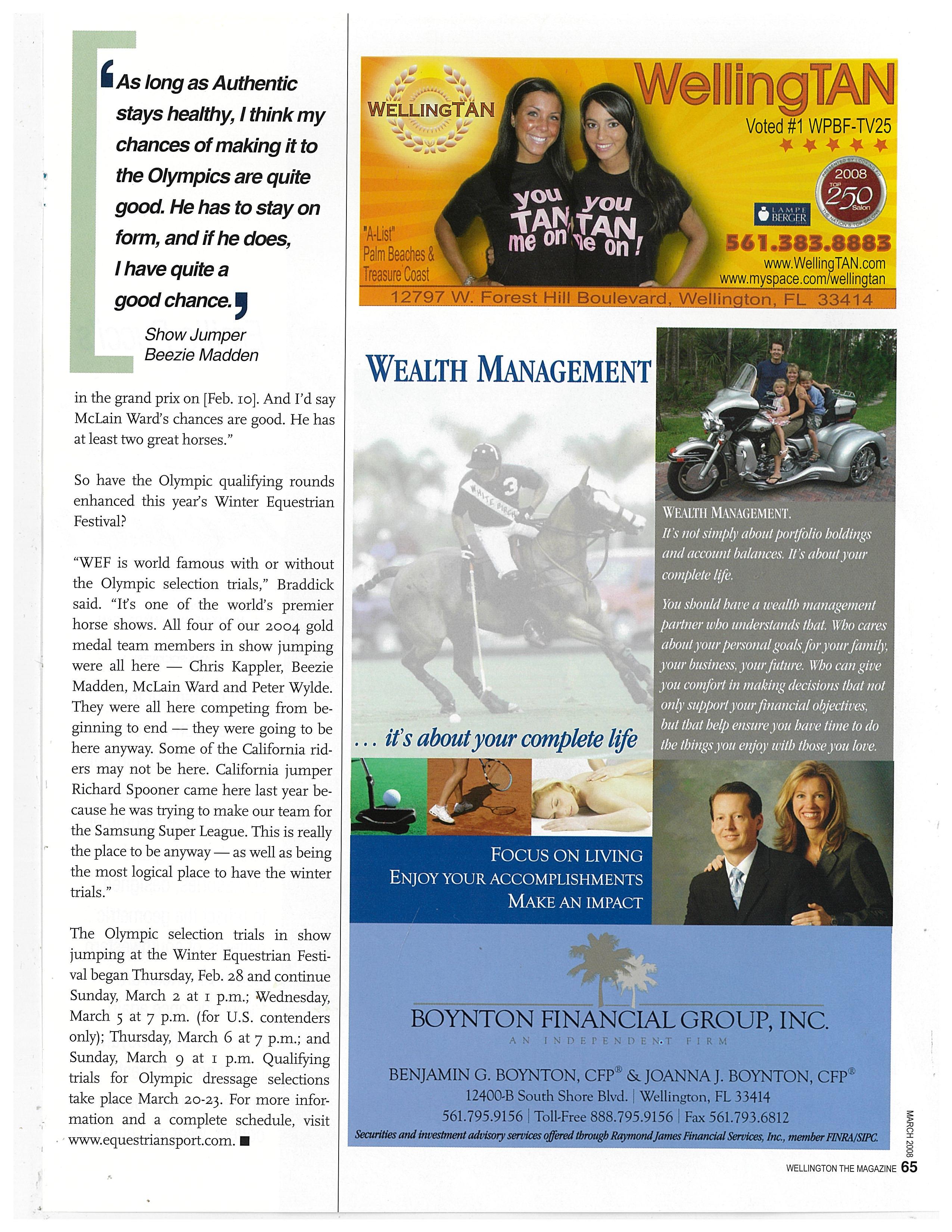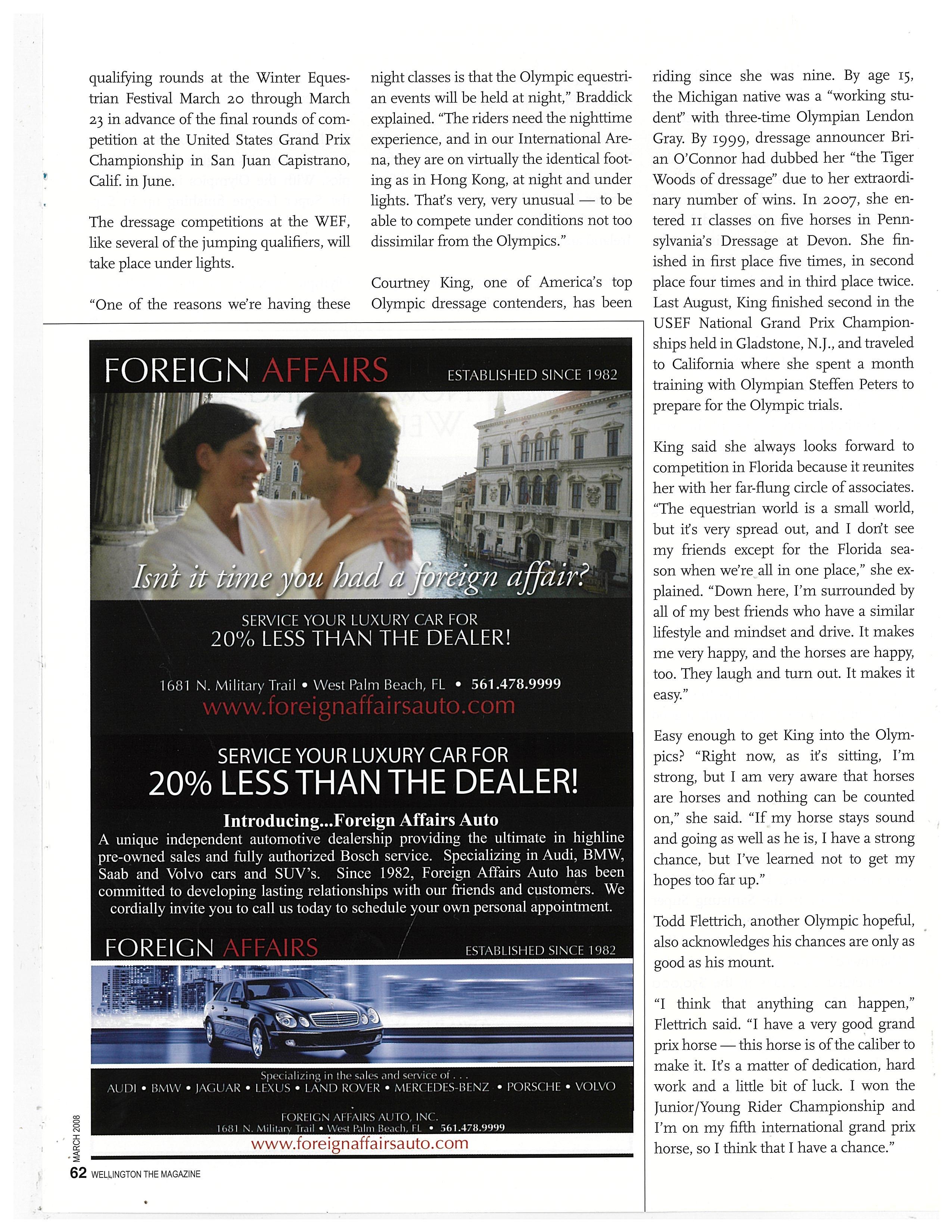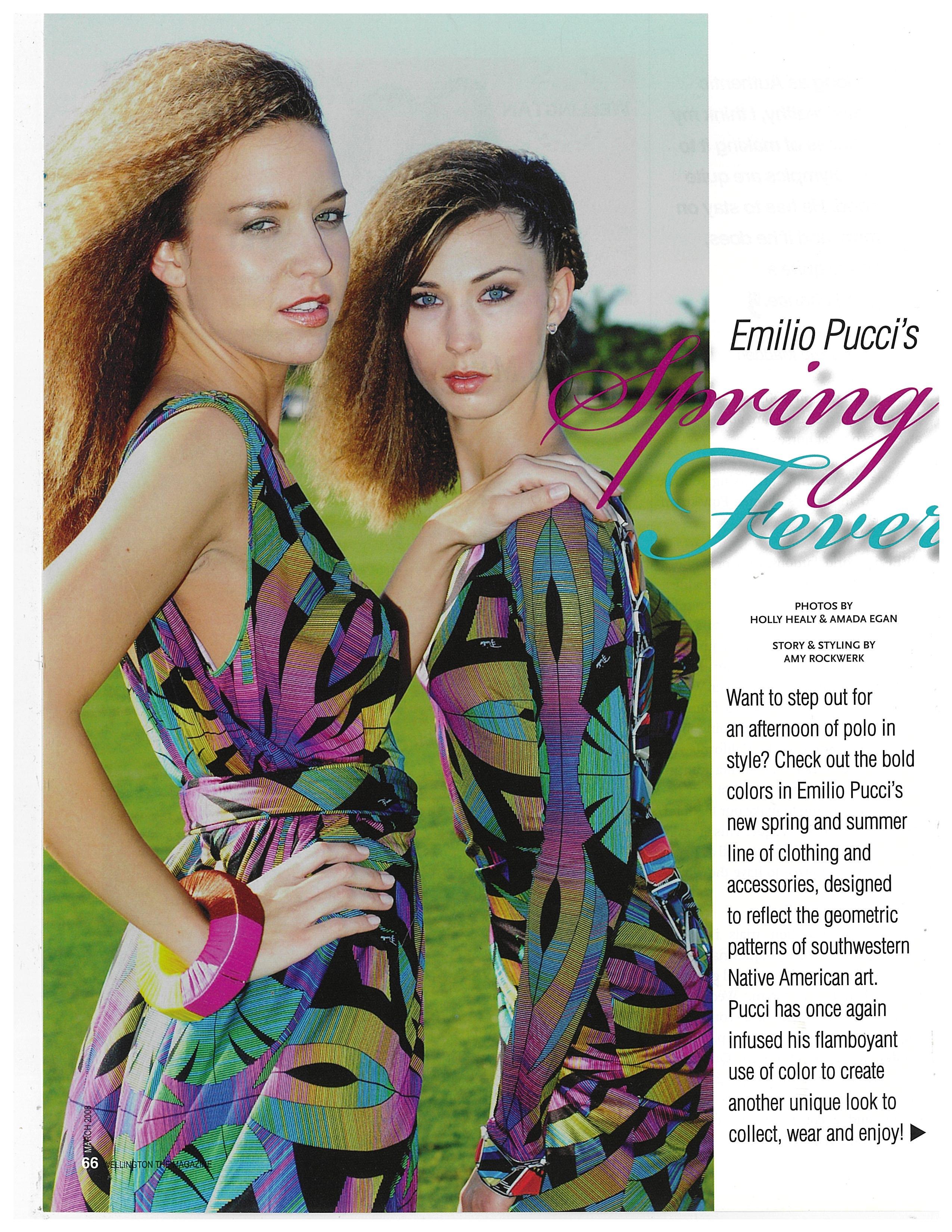 WELLINGTON THE MAGAZINE – March 2008 ON THE COVER: Casey Richards models a silk Jersey dress with a matching deer and snakeskin Jacket from Emilio PuccI's Spring 2008 line Pictured with Casey is a Lusitano horse courtesy lnteragro Hair by Michael Angelo Salon & Spa Makeup by Jenna Thompson and Jillian Caferelli Shot on location at the International Polo Club Palm Beach 1n Wellington PHOTO BY HOLLY HEALY