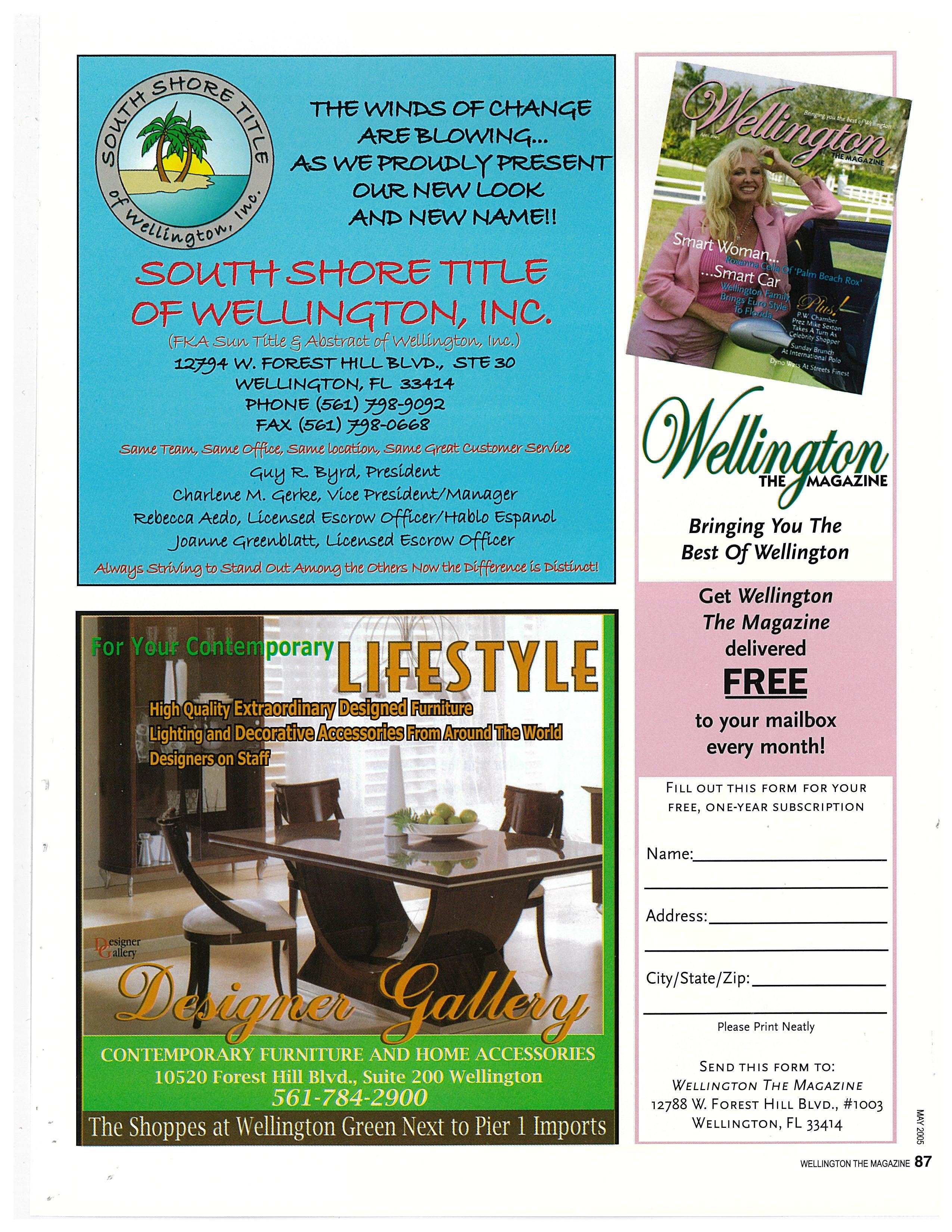 WELLINGTON THE MAGAZINE – May 2005 ON THE COVER: Kathleen Bilotta and her daughter Janixx Parisi, one of the