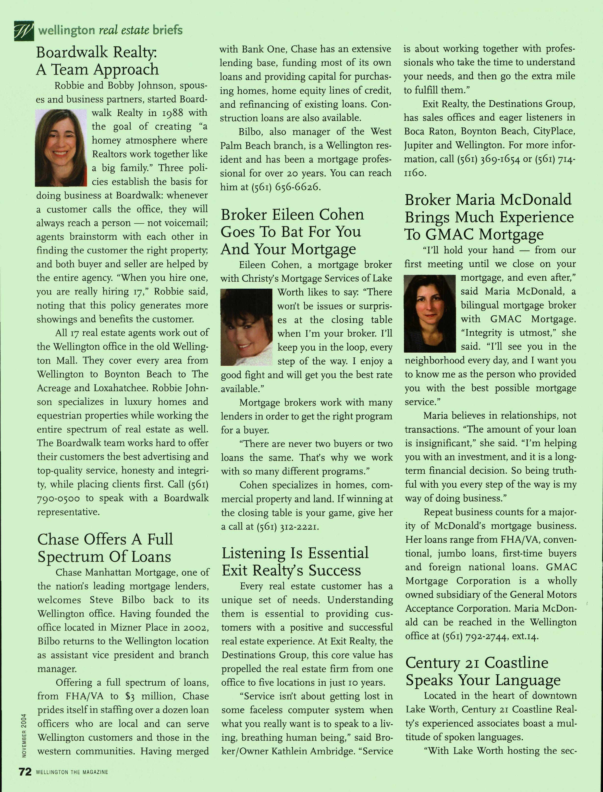 WELLINGTON THE MAGAZINE – November 2004 Cover photography by Lisa Keeney featuring our Wellington Makeover winners (L-R) Stacey Ferraro, Beverly Cohen, Lacey Van Reeth and Eileen McMillan. Clothing furnished by Nordstrom; jewelry by Van ell/Jewelers/Designers. Hair, makeup and