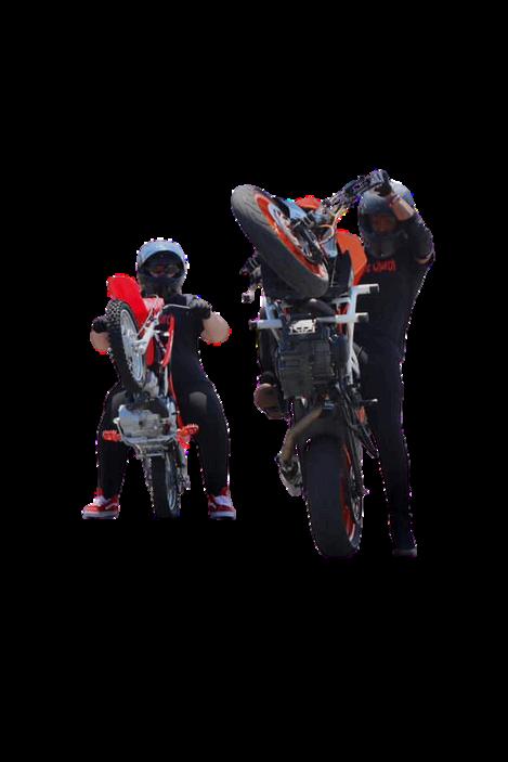 My goals are clear: I intend to become a better all-around rider I have a range of tricks I want to master, and I’m eager to challenge myself physically and mentally Overcoming my fears, both on and o the bike, is exhilarating, and I’m committed to seizing every opportunity to grow and excel I also envision opening a shop to sell Icon gear and apparel, where I can build and customize stunt bikes Sharing my knowledge with new riders and helping them kickstart their journeys is something I deeply value