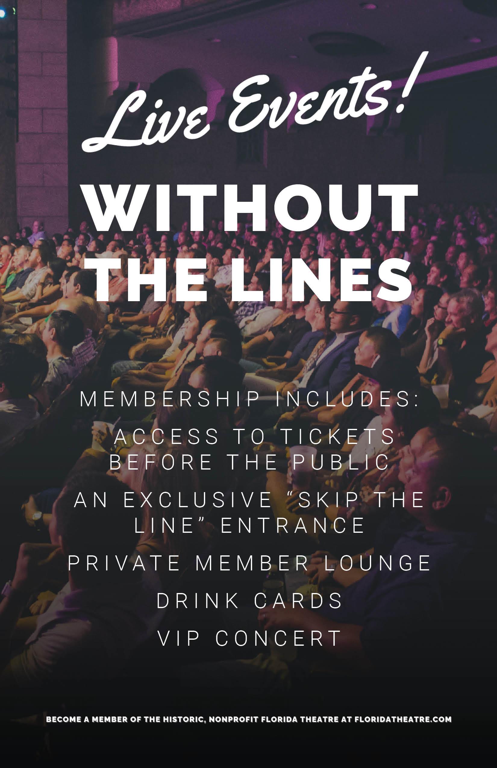 Visit our website at floridatheatre.com for coming attractions information, online ticket sales, and to support the Theatre by becoming a Member of the Florida Theatre.