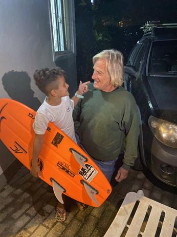 Aí recebemos o Lukinha e seus pais e foi muito legal ver a articulação dele na entrevista e ouvir dele sobre os 74Km que percorreu no XPSertões, é muito interressante e a alegria dele em conseguir colocar as quilhas da Floripa Fin, com o Sergey na sua prancha de Wave que foi batizada em Ibiraquera...
