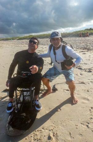 Fernando chegou na Praia, na garupa do quadriciclo dos Bombeiros Salva Vidas, que trabalham no Posto ali bem perto!