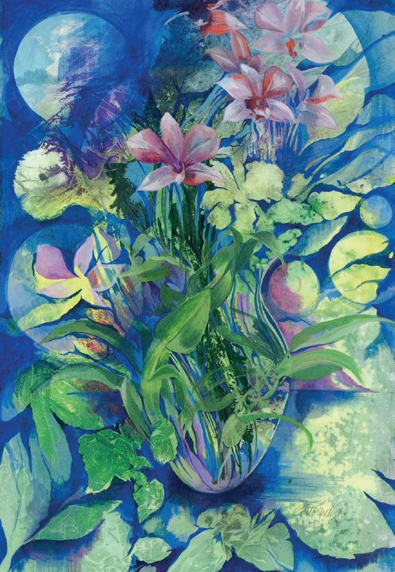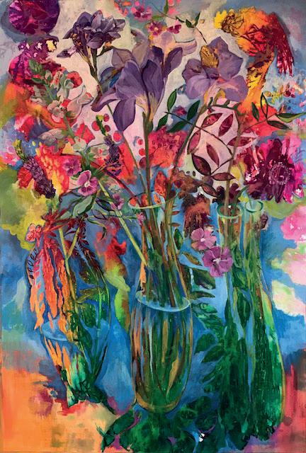 Gill is known for her rich use of colour, layers and textures. She is particularly known for her interpretations of florals. She finds her inspiration in natural forms and spirituality. She gravitates towards the use of layers and interactions of paints, and feels this emulates life itself, with all its rich interconnection.