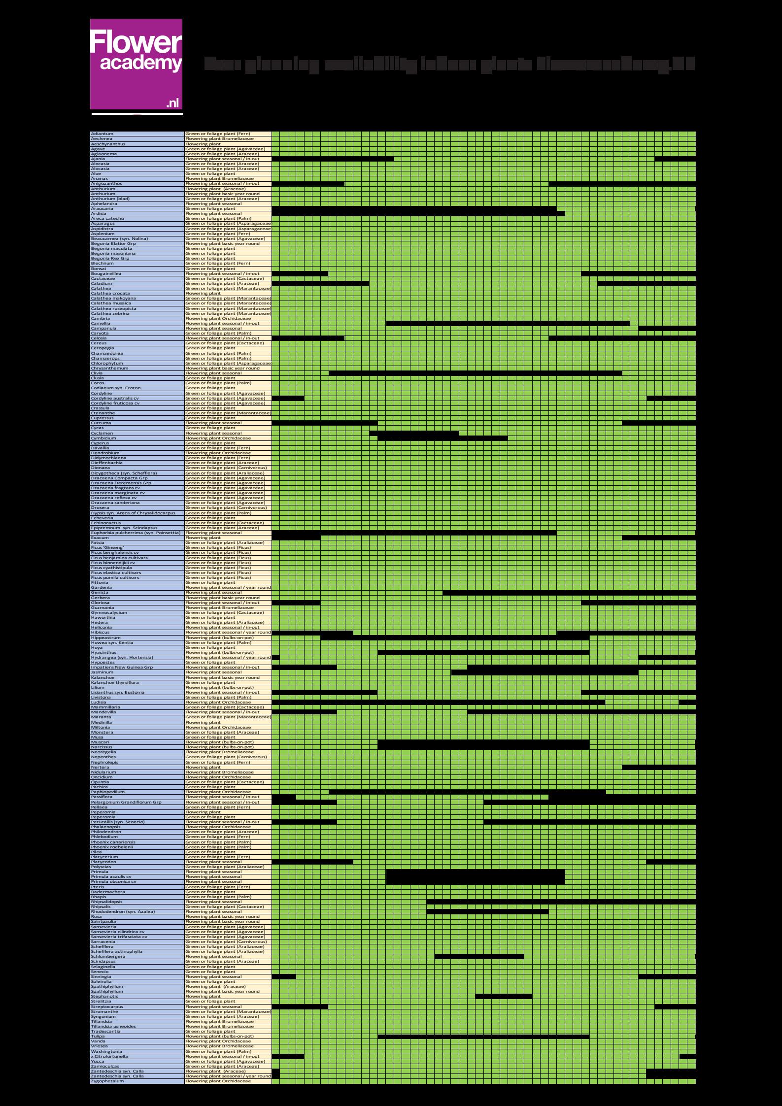 Minder bladgroen = meer licht. Bloeiende planten veel licht maar geen direct zonlicht