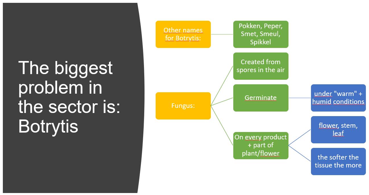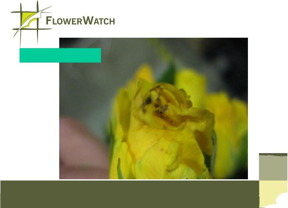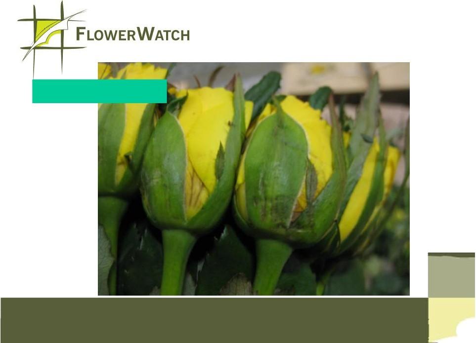 Perforated folie + sleeves Bigger holes are better Botrytis Rosa Botrytis in Rosa Botrytis after 5-7 days The grey mold is very infective Botrytis Gerbera Floward education plan