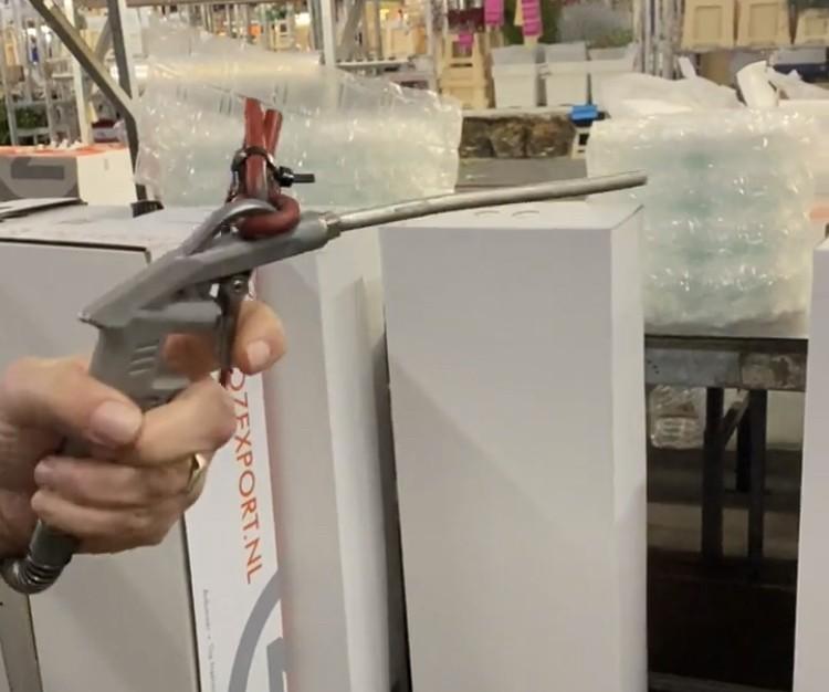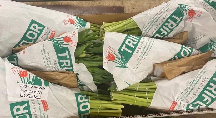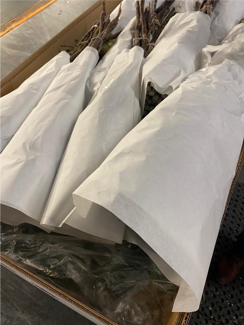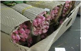 Before flowers go into a box Blow dry with an air pistol Sensitive flowers wrapped in paper