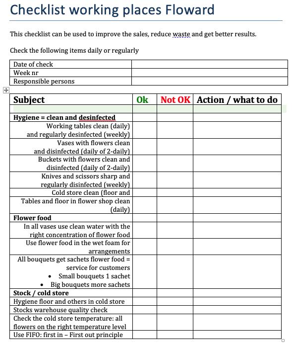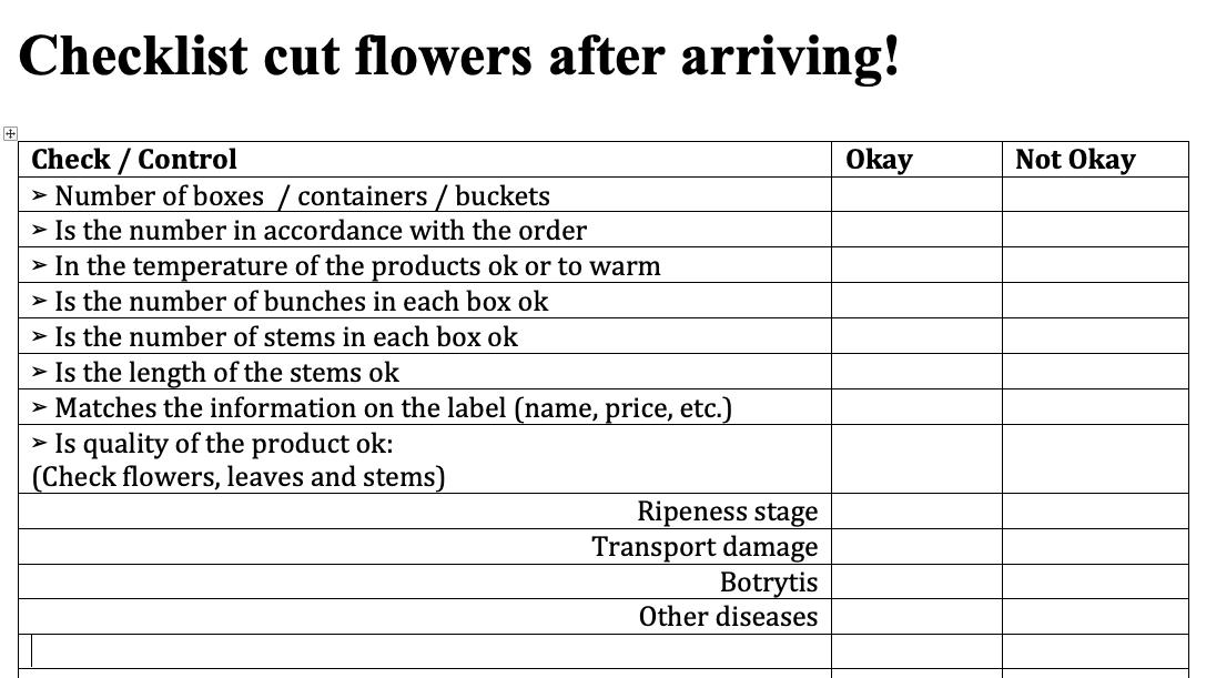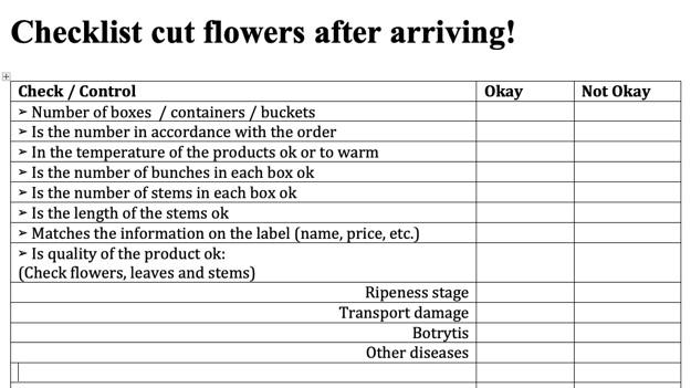 The chain for cut flowers and the influence on quality: