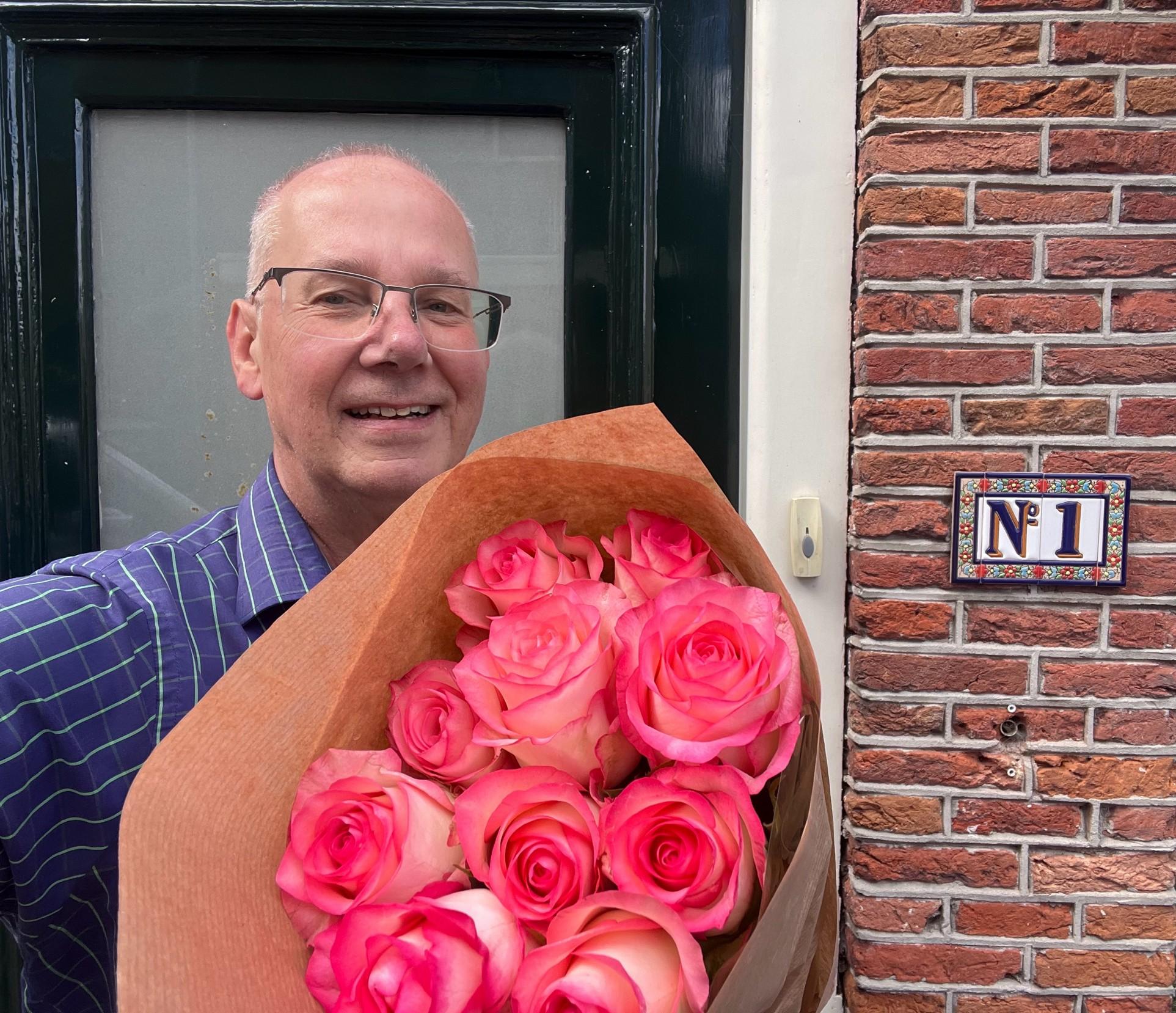 People receiving flowers
