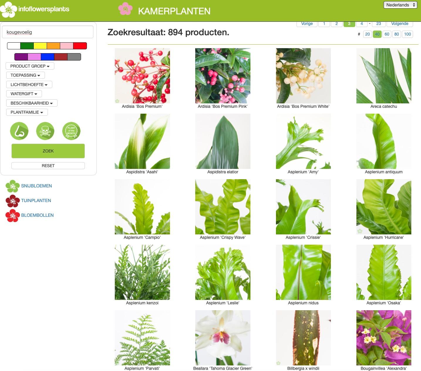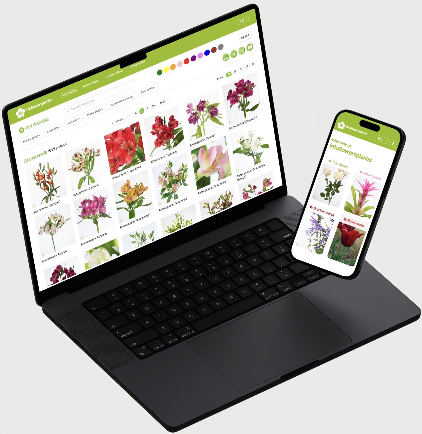 InfoFlowersPlants with possibilities to search and find the assortment in the various product groups Including interesting facts such as origin, care, symbolism, location, etc.