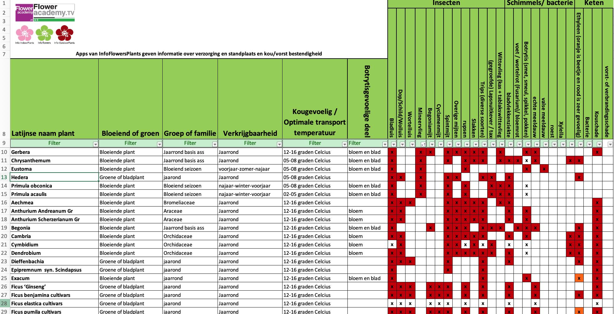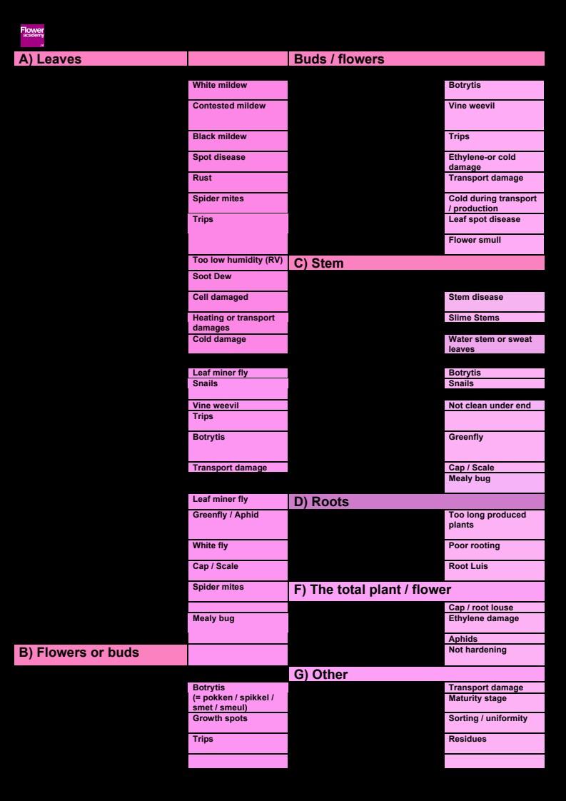 Special explanation Rosa Chrysanthemum Gerbera Lilium Lisianthus Tulipa Narcissus Bouvardia Euphorbia Hippeastrum syn. Amaryllis Use determination tool Gebruik determinatietool Determination key Handy Excel sheet https://www.koppert.com/plant-pests