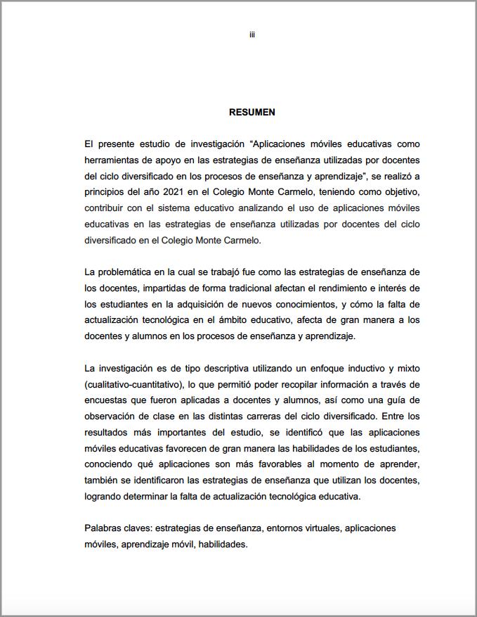 • Resumen en idioma Maya, Garífuna o Xinca (si el estudiante lo desea)