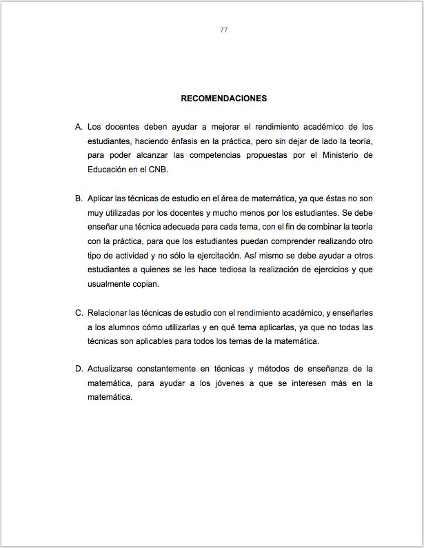TIP: recuerde que las recomendaciones deben ser congruentes con las conclusiones del trabajo de graduación