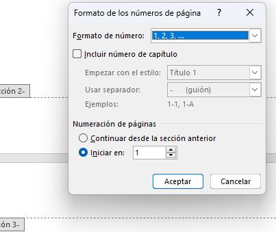 revise que los ajustes del documento (márgenes, interlineado, tamaño y tipo de letra) no se modifiquen al cambiar de sección