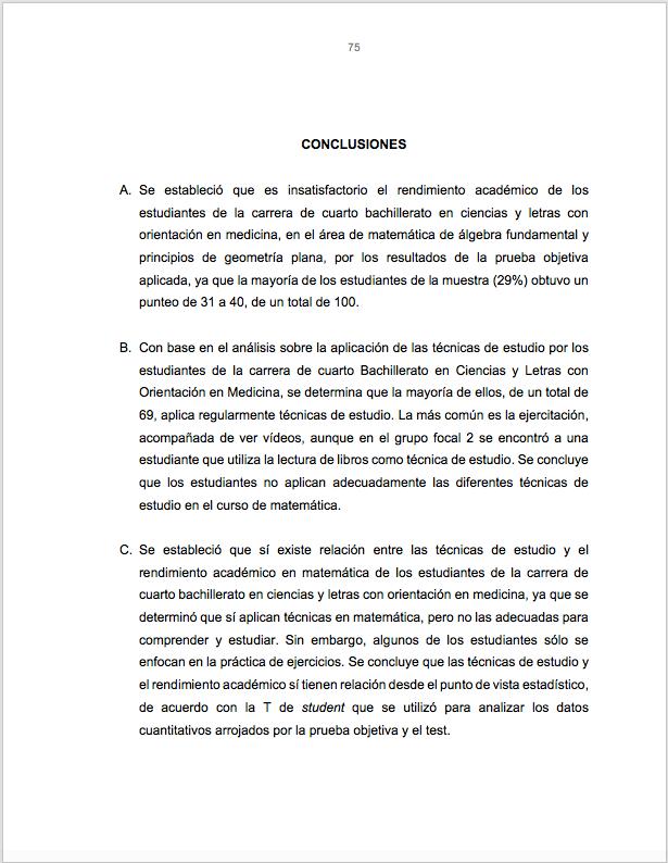 TIP: recuerde que las conclusiones deben responder a los objetivos del trabajo de graduación