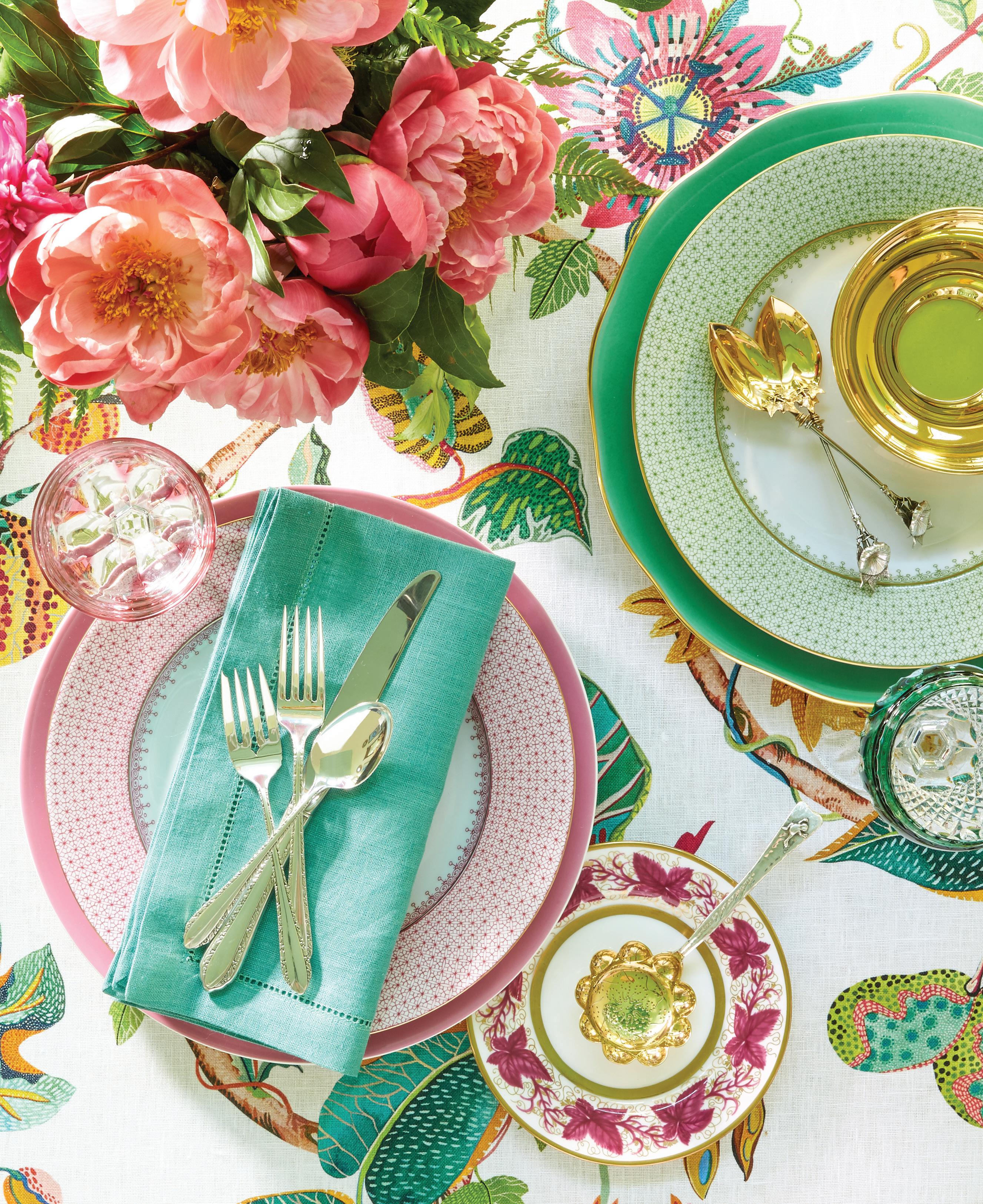 PASTEL HUES AND NATURE-INSPIRED PRINTS SET THE SCENE FOR WARM-WEATHER ENTERTAINING.