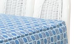A pleated silk Élitis wallcovering graces a powder room for texture, while an indigo-and-white Ashley Woodson Bailey