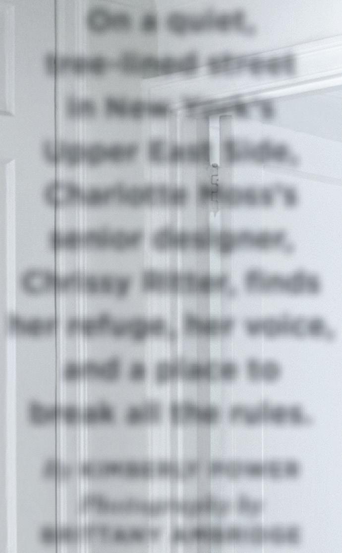 On a quiet, tree-lined street in New York’s Upper East Side, Charlotte Moss’s senior designer, Chrissy Ritter, finds her refuge, her voice, and a place to break all the rules.