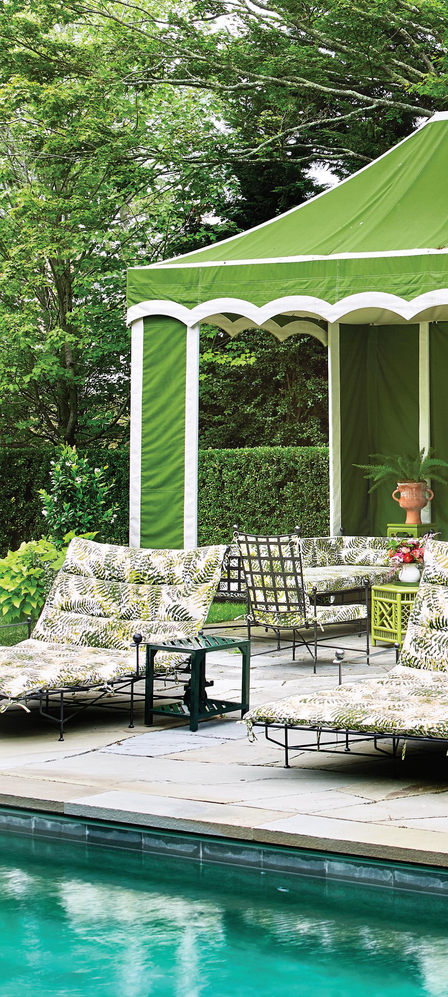 ON THE COVER: The poolside “tent” at Kate Brodsky’s home in East Hampton serves as the entertaining hub for family and friends all summer long. Photographed by Tria Giovan