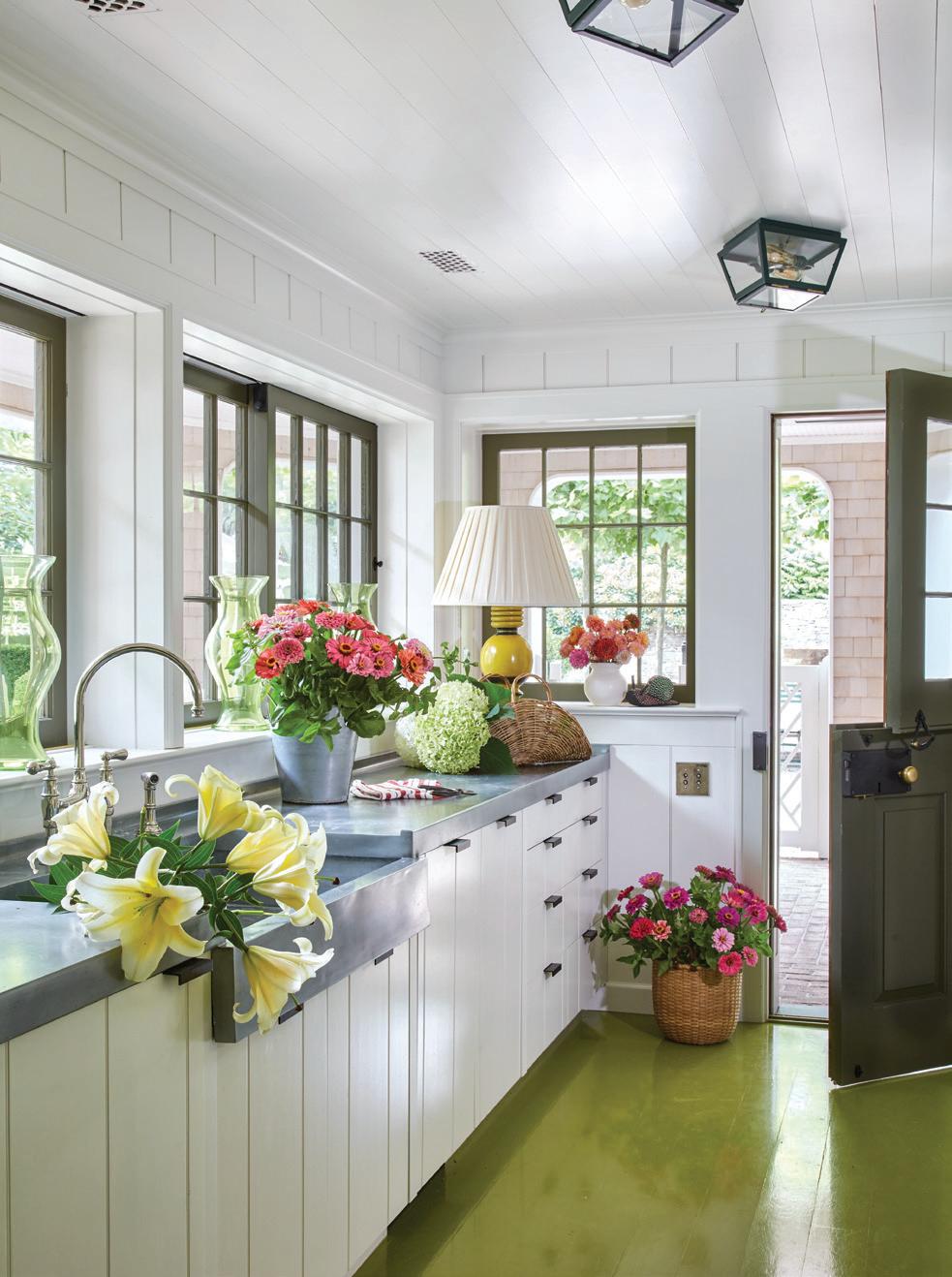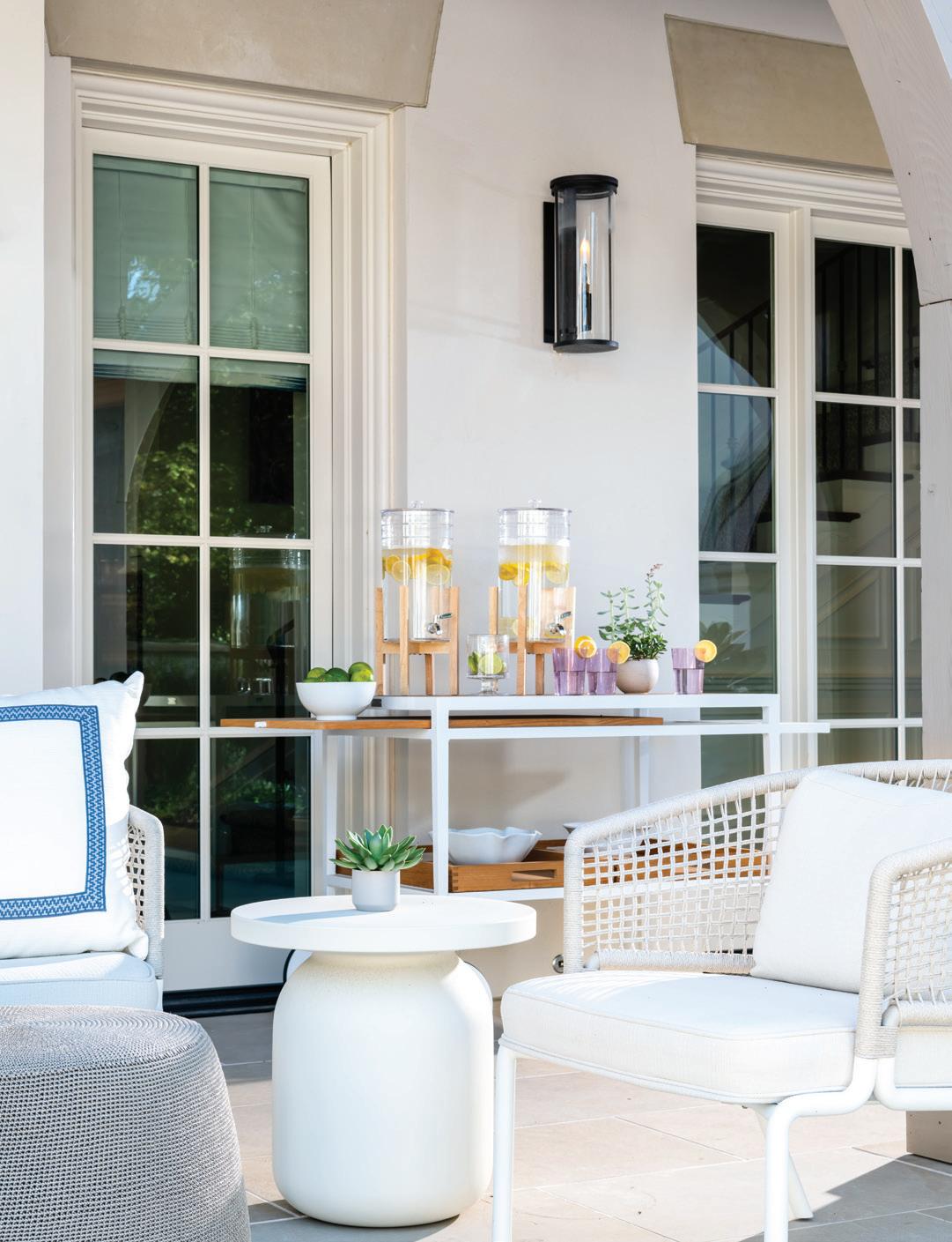 As grownups, many of us work throughout the year and no longer experience the release and exquisite ecstasy of hearing, in the immortal words of Alice Cooper, “School’s out for summer!” Yet there is a residual emotional imprint that lends the summer months an air of ease—whether we find reprieve from the blazing sun in rooms filled with cool colors, pretty furnishings, intriguing artwork, and seasonal flowers or spend time outdoors serving a light summer supper to friends and family, drinking iced co ee in bistro chairs that have settled into pea gravel, or meandering down a woodland path in the garden. We adults do have our own ritual ways of soaking in summer.