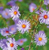 Aster x frikartii ‘Mönch’ bloeit maandenlang, wat hem tot een populaire tuinplant maakt. De margrietachtige, lavendelblauwe bloemen hebben een spiraalsgewijs, goudgeel hart dat bij het ontluiken een groene tint heeft. De bloemblaadjes zijn lang, verfi jnd en daarnaast prachtig blauw.