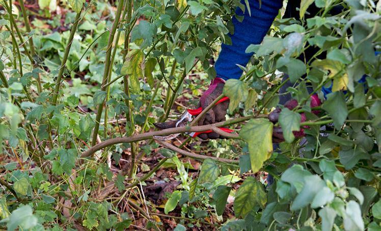alle energie naar de ontwikkeling van de kruin gaat. Controleer op krui sende of schurende takken, en dun overvolle delen uit. Ga secuur te werk, want je kunt takken niet terughangen.