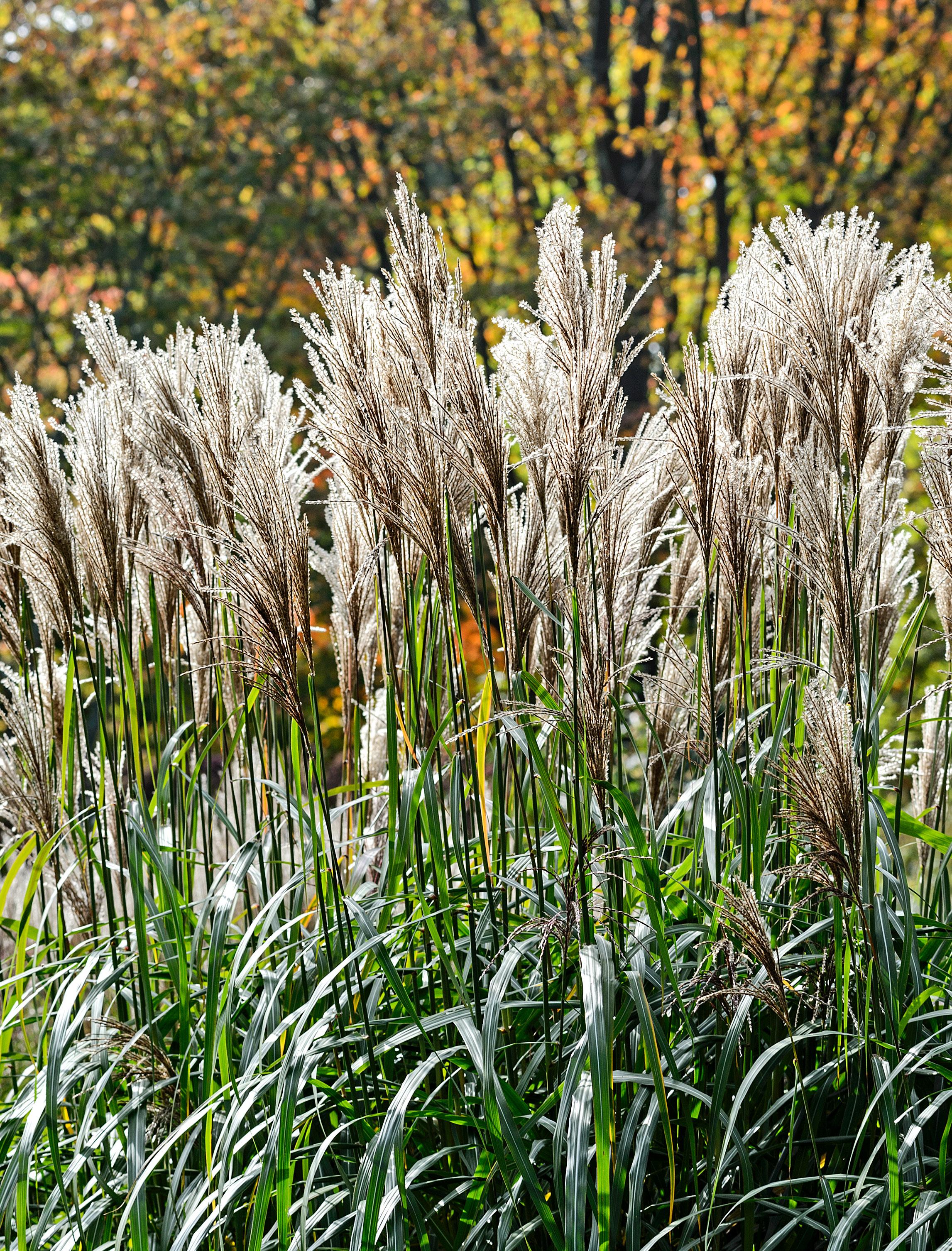 Miscanthus sinensis ‘Malepartus’ Snoei eind winter terug tot de grond. De bloeipluimen drogen goed. Deel kluiten in het voorjaar. H x B 2 m x 1,2 m