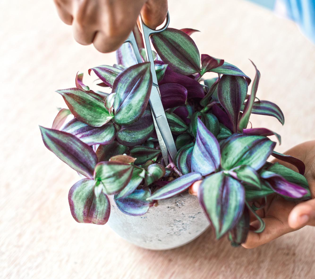 Tradescantia zebrina is met recht een van de populairste kamerplanten. Hij heeft spectaculair gekleurd blad, is onderhoudsarm en groeit snel. In het Engels wordt hij ook wel ‘inchplant’ genoemd, omdat hij wel een inch per dag lijkt te groeien en uit kleine stekken snel wortelt. Omdat de bladeren succulent zijn, kan hij er ook tegen als je een paar keer vergeet water te geven. Met zijn lange stengels kan hij dienst doen als hangplant. En wil je hem compact houden, dan kun je hem knippen. Het is de perfecte plant voor beginners of mensen die snel een groene ruimte willen inrichten.
