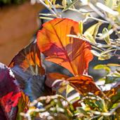Opvallende plant met grote bladeren. Deze groenblijver is het hele jaar mooi, maar vooral in de winter, wanneer het loof donkerrood wordt.