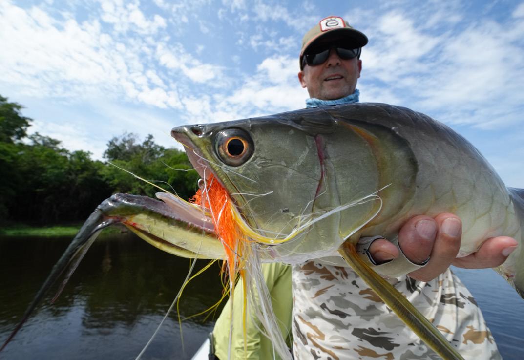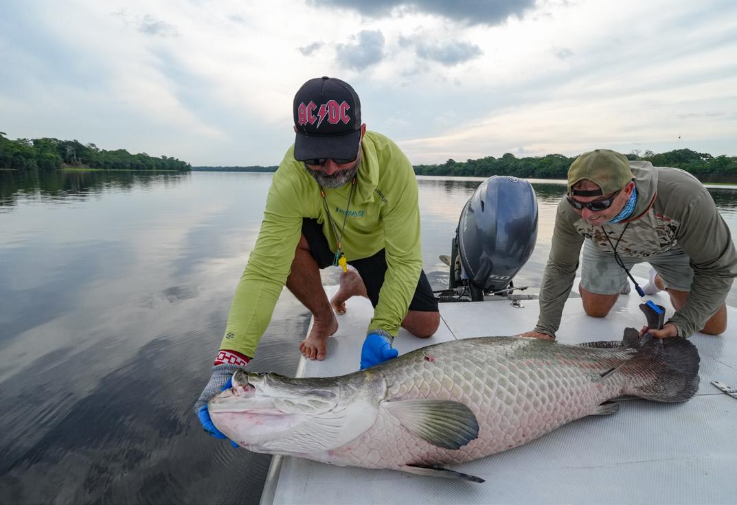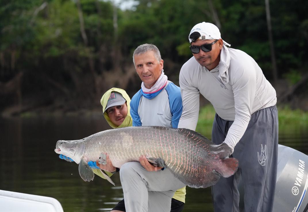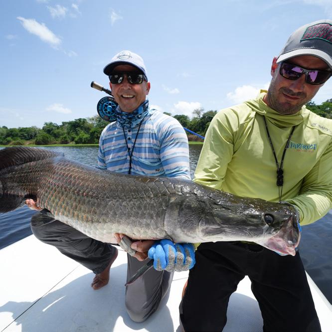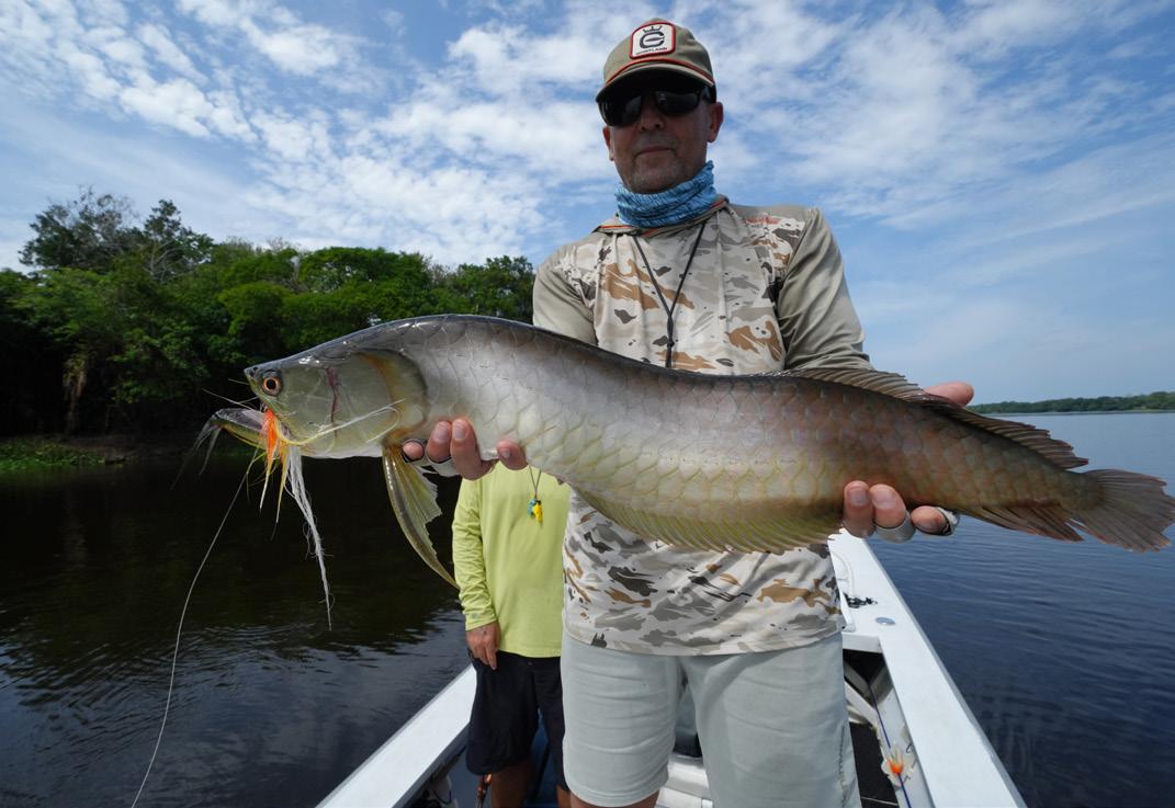 Our group consisted of very experienced and highly motivated fly fishermen. As a result, the week was very successful. In total, we landed 32 Arapaima, 67 Arowana, and 12 Tambaqui, including 4 Arapaima over two meters long, with a top fish measuring 225 cm from Christoph, 220cm from Marko, 210 cm from Heinz und another 210 cm from myself.