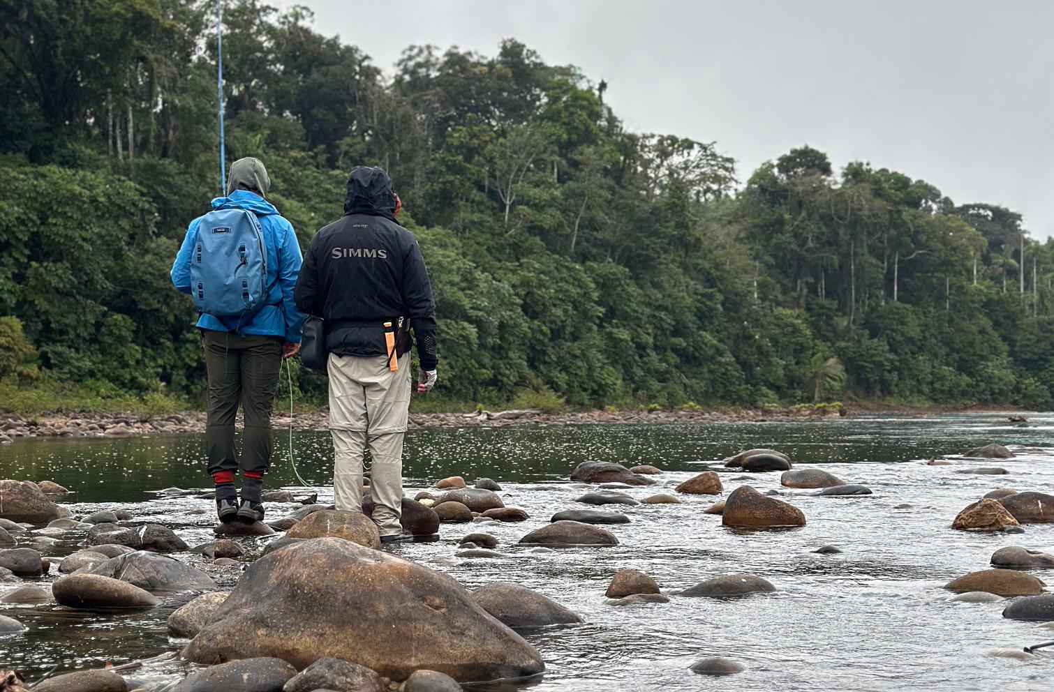 Bei unserer Landung schien die Sonne, und es war nicht wirklich kalt. Wir dachten daher, dass wir Glück hatten. Am nächsten Tag konnten wir – mit etwas Verspätung – ausfliegen, da wir zunächst warten mussten, bis sich der Nebel auflöste. Bei Regen oder Kälte hängt der Nebel im Amazonas oft unter oder knapp über den Baumkronen, was Helikopterflüge unmöglich macht, da Sicht erforderlich ist. Am ersten Tag konnten wir fliegen: Einige Gruppen kamen weiter hinaus, andere weniger, da der Nebel immer wieder absank. Einige hatten einen sehr guten Angeltag, andere einen durchschnittlichen –insgesamt war das Fischen aber gut.