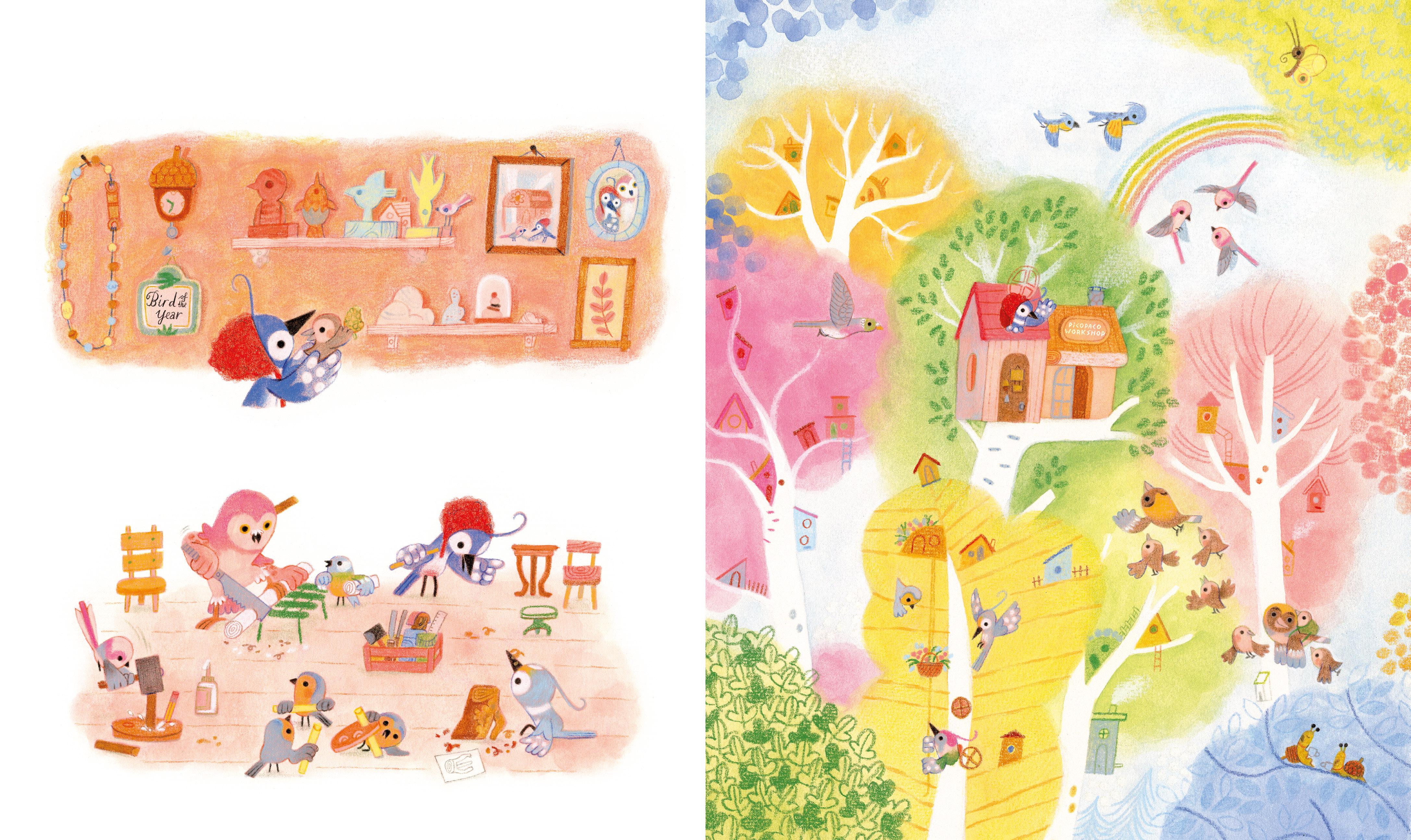 Picopaco loves to collect special objects, carve lovely toys and build brilliant things – including her own home! Her discomfort with loud noises and attachment to her routine leave her feeling lonely, but after a terrible storm leaves woodpecker town in a mess, she receives some unexpected visitors.