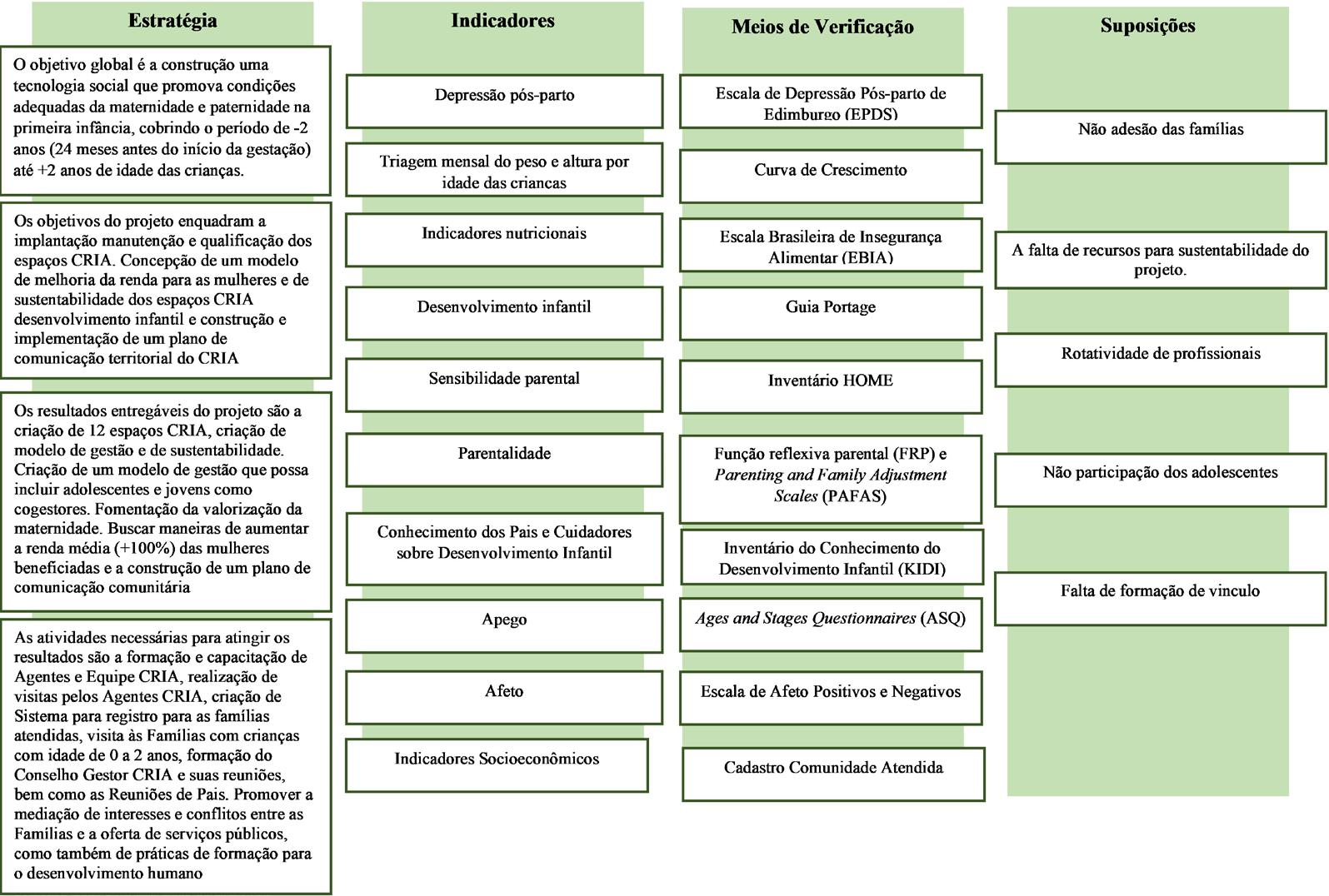 Ao construir o marco lógico da intervenção, o presente trabalho contribui com uma instituição social e apresenta uma possibilidade de utilização dos indicadores e instrumentos validados e que estão alinhados aos objetivos do CRIA. Sendo assim, o produto desta pesquisa permite monitorar as atividades, quantificar os produtos e, ainda, acompanhar os resultados e impactos do CRIA.