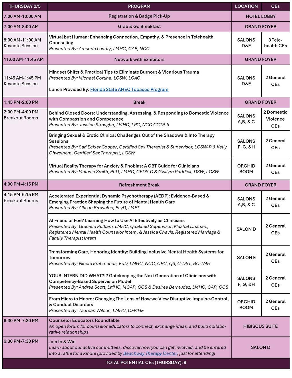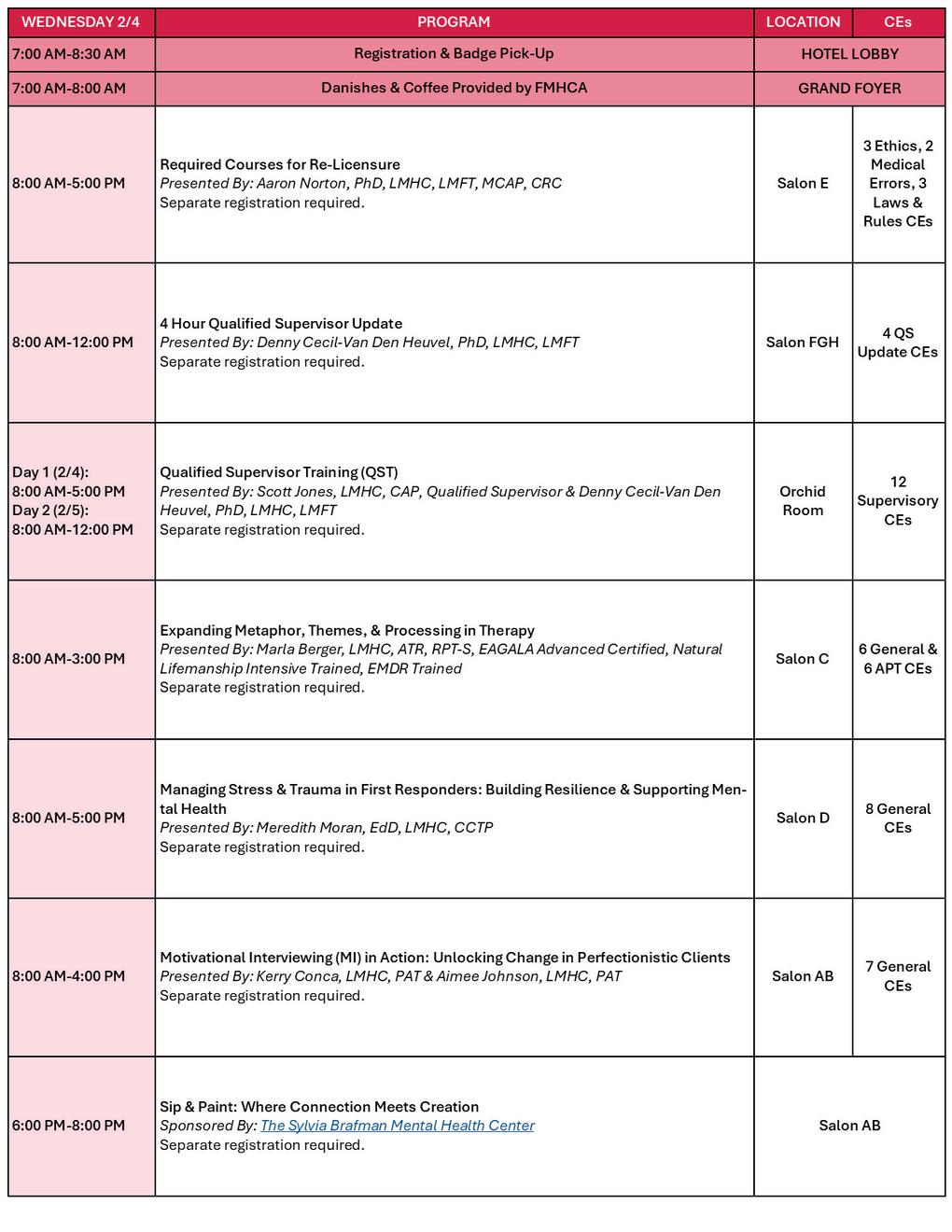 This conference is approved by the Florida Board of Clinical Social Work, Marriage and Family Therapy, and Mental Health Counseling. (LCSW, LMFT, LMHC) FMHCA CE Broker #: 50-748; Conference Tracking #: 20-1336617.