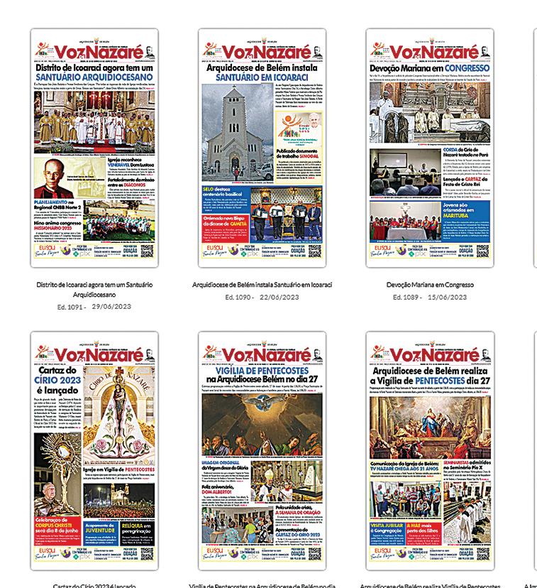 A Arquidiocese de Belém e a Fundação Nazaré de Comunicação agradecem a Deus pelos dons recebidos para promover a evangelização pelos meios de Comunicação Social. Ambas as instituições agradecem, especialmente, os leitores do Jornal Voz de Nazaré. No último dia 5 de julho o semanário arquidiocesano de Belém chegou aos 110 anos de existência como o jornal católico da família. O jornal da Arquidiocese é um dos mais antigos jornais impressos em circulação. A todos, muito obrigado!