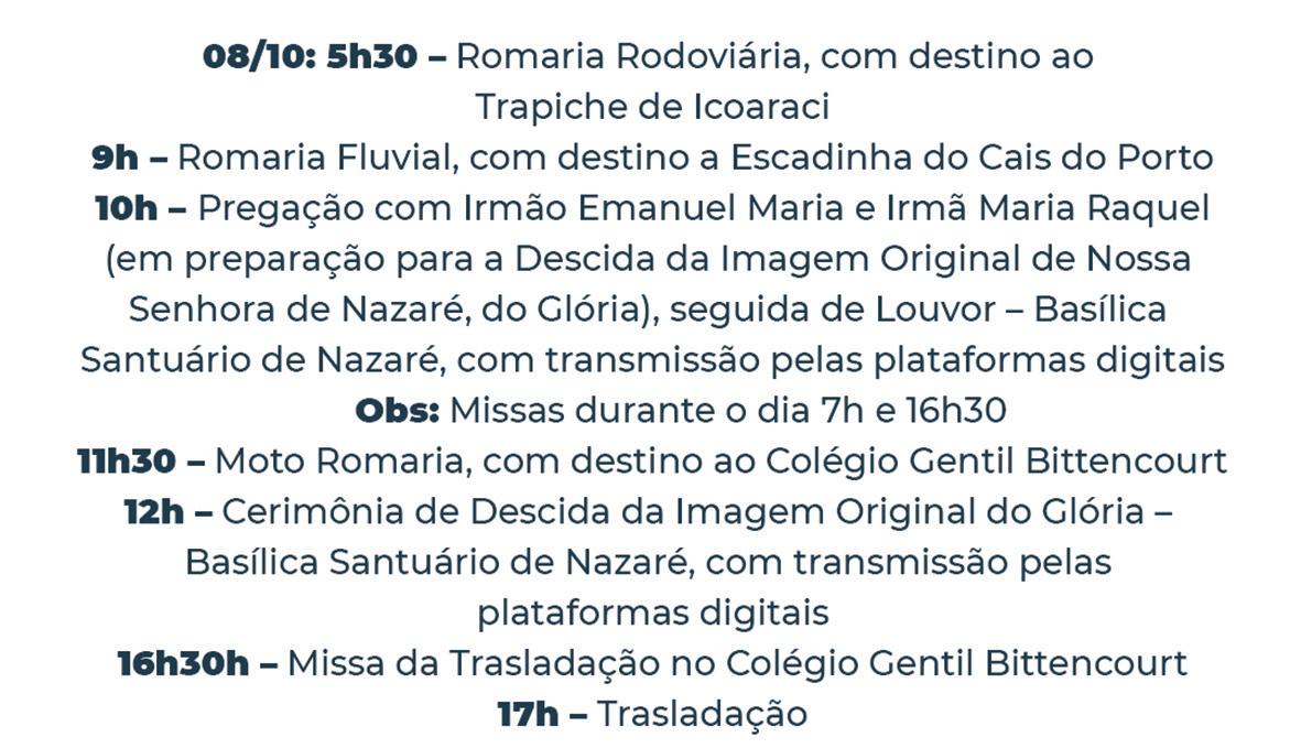 PROGRAMAÇÃO DAS PROCISSÕES DO CÍRIO 2022