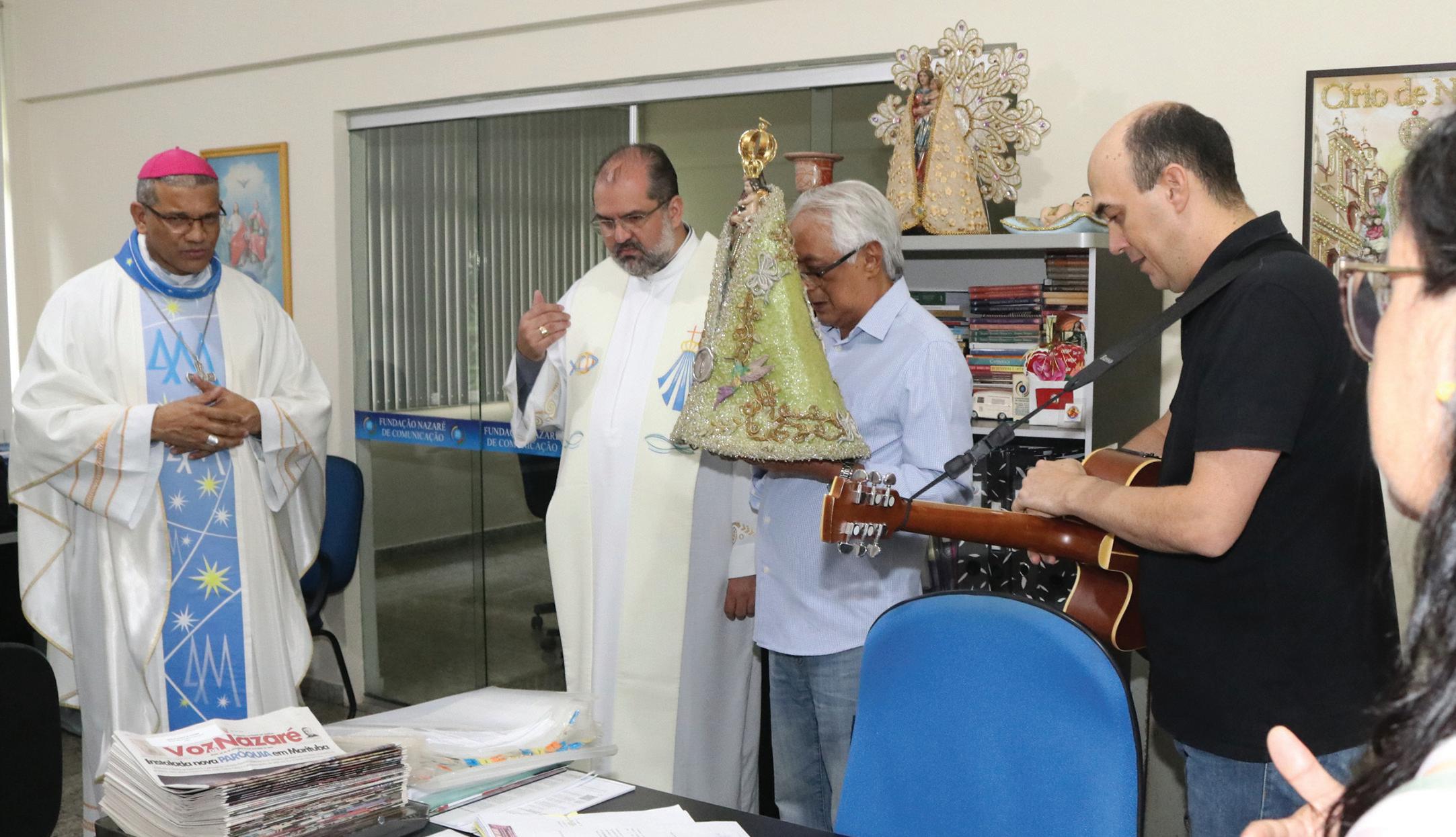 Senhora. Que toda nossa gratidão possa estar direcionada a Ela, por tantas graças que temos recebido, sobretudo nos últimos anos, de tantas dificuldades. Mas, Nissa Senhora nos lembra da alegria. Em meu nome e de Dom Antônio, peço que ela interceda pela Cúria, pela Fundação Nazaré, Caritas, pelo