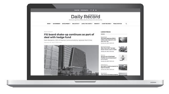 The Jacksonville Daily Record is available by mailed subscription and at newsstands. Subscribe online at jaxdailyrecord.com/subscribe or contact our subscription department by phone at 877-231-8834 or via email at subscriptions@jaxdailyrecord.com