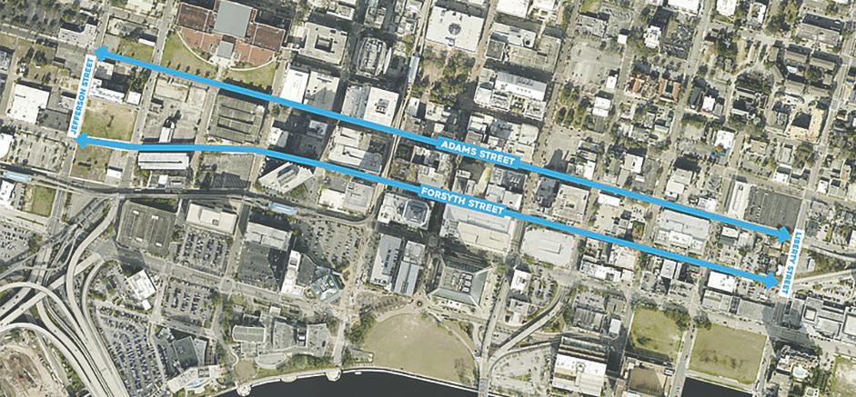 Lane closures began Feb. 22 as part of the work to restore two-way traffic to Forsyth and Adams streets in Downtown Jacksonville, the city announced.