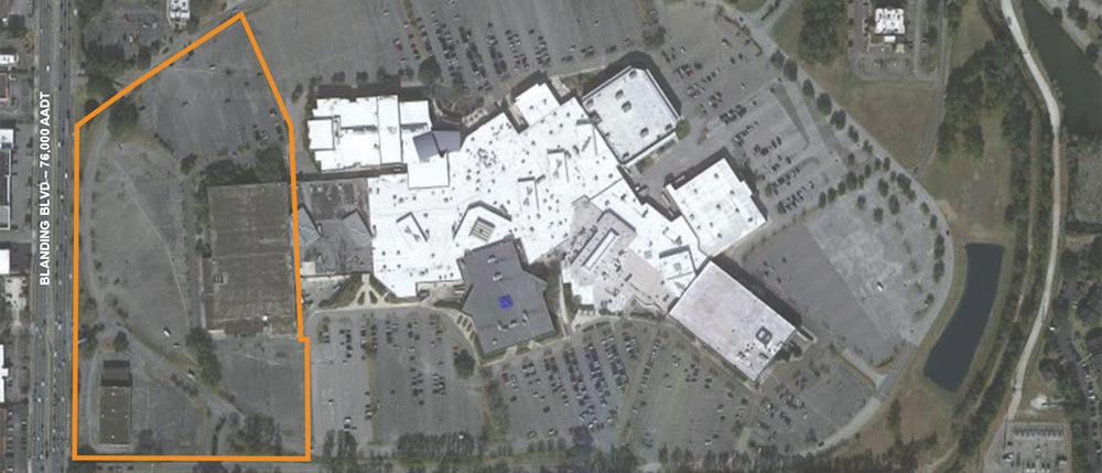 The 189,796-square-foot closed department store and associated parking are being marketed as Orange Park Plaza with five outparcels.