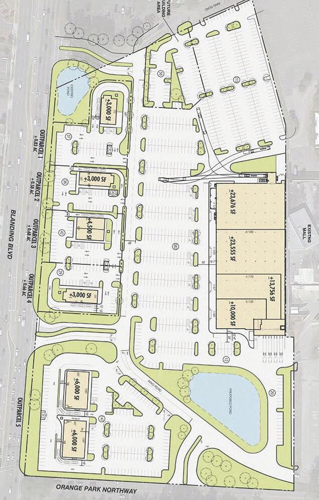 This rendering shows big-box stores replacing the closed Sears at the Orange Park Mall.