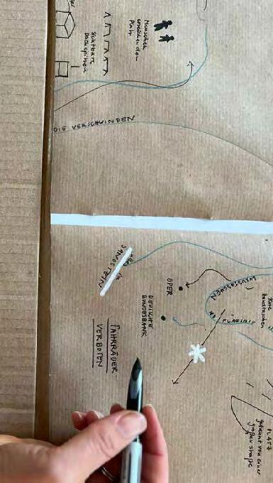 Mit Remote Mappings setzte sich die Planerin und Künstlerin Diana Lucas-Drogan mit dem Zuhören aus der Ferne innerhalb des kritischen Mappings in der Stadtforschung auseinander. In vier exemplarischen Arbeiten sowie Interviews reflektiert sie die Methode des „Kartierens aus der Distanz“. Die Zeichnungen auf Basis von Sprachnachrichten sind das Ergebnis eines dialogischen Prozesses. Sie bieten die Möglichkeit, die Stimmen auch ferner Teilnehmenden sichtbar zu machen und verwandeln gesprochene Erfahrung vor Ort in gezeichnete Erzählungen, die die Komplexität als Netzwerk der Beziehung zwischen Körper und Raum verdeutlichen.