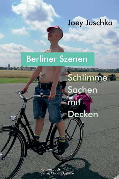 Joey Juschka pendelt zwischen Berlin und Hamburg, zieht durch die Straßen und in dunkle Ecken und ist hauptsächlich mit Stift und Papier anzutreffen. Auszeichnungen: Publikumspreis des renommiertesten Wettbewerbs für Nachwuchsautor*innen „open mike“, Literatur-Recherche-Stipendien des Berliner Senats, Preis „Bester Humor“ bei „Wortrandale“. Schrieb eine Zeitlang Berliner Szenen für die taz. Debüt „Die Welt verbessert. Fiktive Lösungen für reale Probleme“ (2023). Weitere Veröffentlichungen u.a. in „Mein Lesbisches Auge 21, Herkunftsgeschichten“, über harte Kindheit in Halle/Saale und in „Mein heimliches Auge XXXVIII“, 2023, über Cruising.