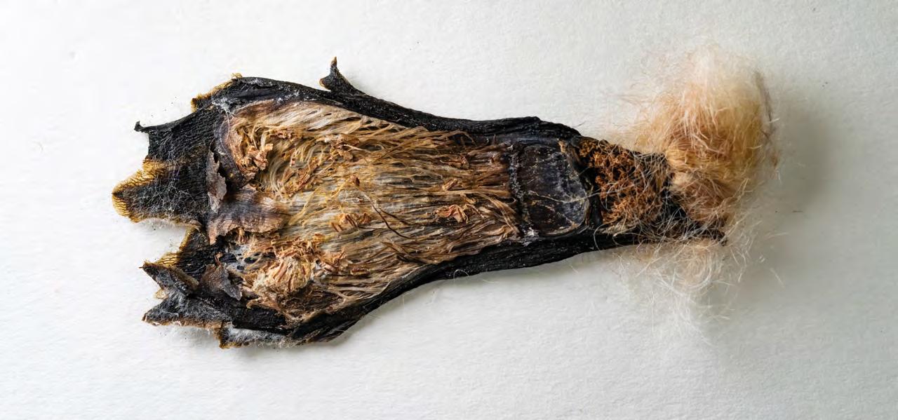 Left: Thick hair and spines blanket parts of the Key Largo tree cactus, to the extent that an isolated fragment might not look like it came from a cactus at all. The Florida Museum of Natural History herbarium has a single collection of Pilosocereus millspaughii Florida Museum photo by Jeff Gage.