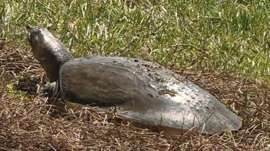 A Florida softshell turtle, a sandhill crane, and a variety of native bees are among the wildlife that have delighted us by visiting the native garden.