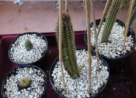 Above, top to bottom: The largest stems could be directly planted in the ground. Staff processed the cacti they'd salvaged and divvied up the material so that it could be grown in greenhouses. Smaller stems were planted in pots to be grown in greenhouses. Photos by Jennifer Possley.