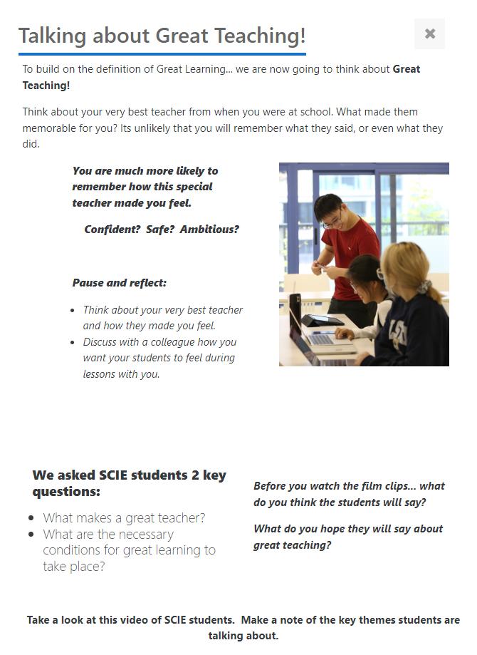 The module, which was launched in August this year, is flexible and is currently being updated to include faculty uploading examples from lessons and students discussing specific examples of high quality learning which could be used both to support departmental or whole school CPD.