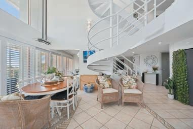 The main living area downstairs is open, bright and welcoming, featuring high ceilings, cool tiled floors and plenty o natural light. esigned or e ortless holiday living, the space flows seamlessly to a covered outdoor barbecue area that captures the winter sun, creating the perfect spot to entertain or relax after a day at the beach.