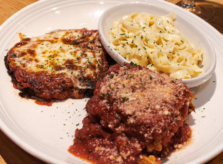 Carrabba’s Italian Classic Trio consists of Chicken Parmesan, Lasagna, and Fettuccine Alfredo. Guests get to sample classic Italian-American dishes full of flavor.