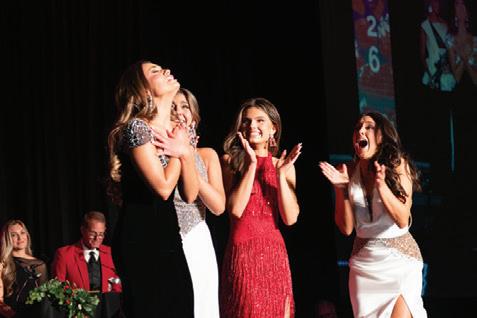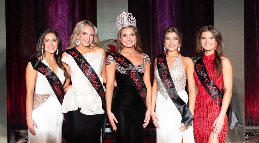 a. The top five finalists to serve as Queen and court from left to right: Queen Layla Rothman, First Maid Marley Mueller, court member Addison Pope, court member Cadence Cape, and court member Addison Griffin.
